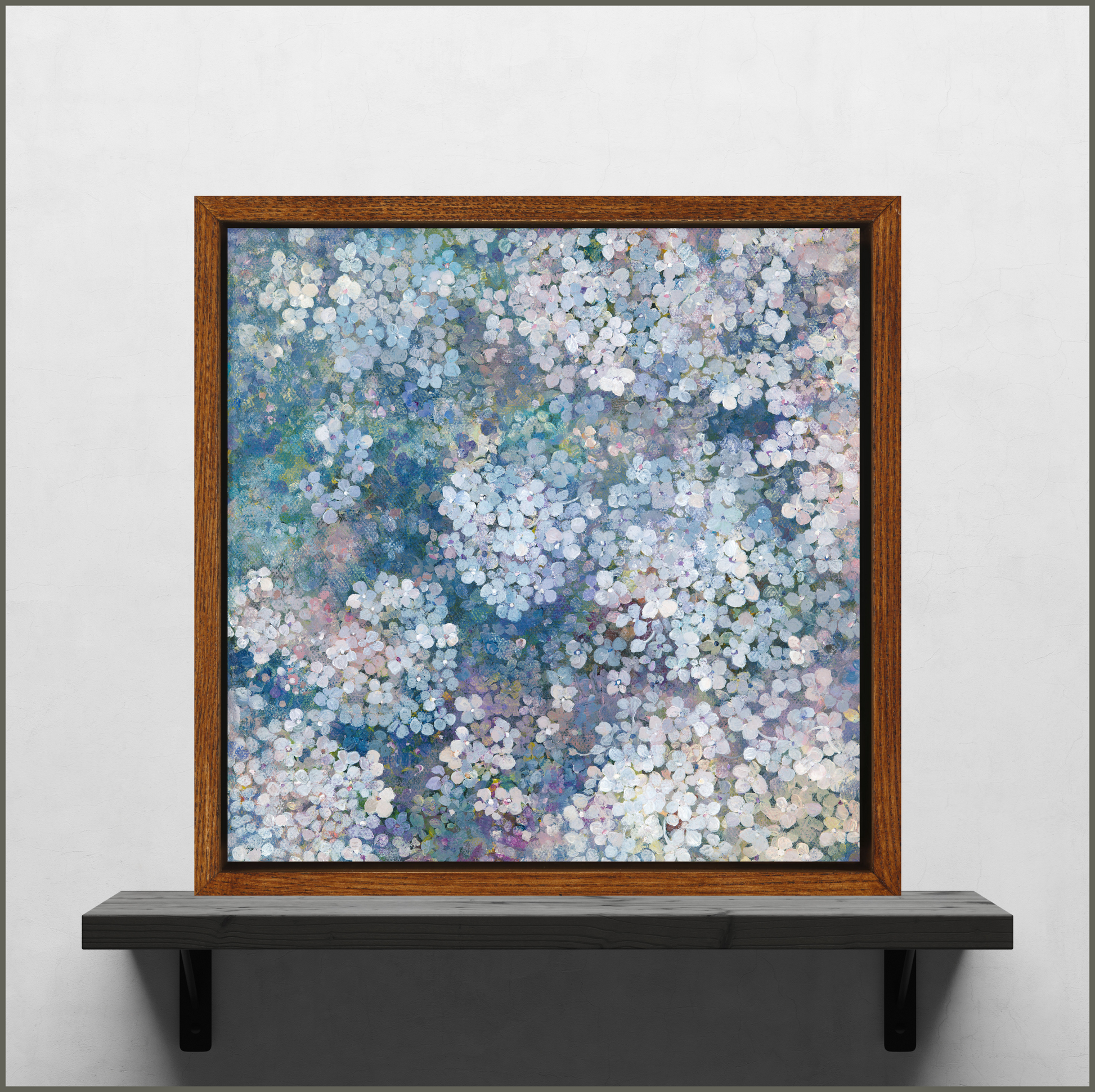 幾重にも重なる青、紫、ピンクなど多彩な色が幻想的な美しさを放ち、見る人の心を穏やかに癒します。虫眼鏡を使い細部まで丁寧に描き込むことで、花びらに深みと奥行きを表現しました。
